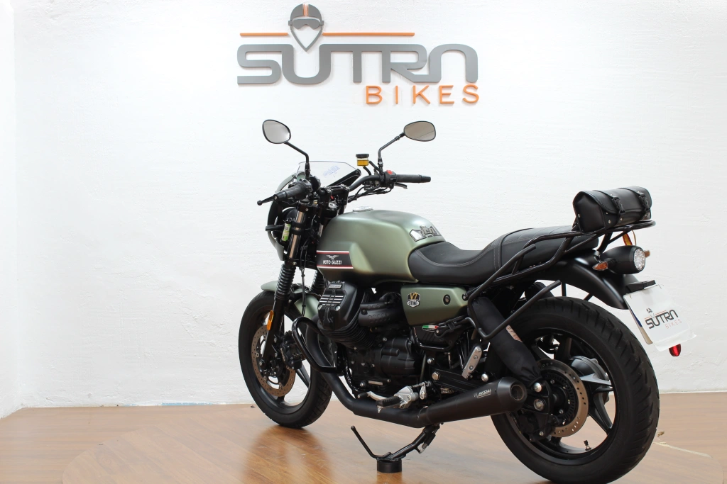 Moto Guzzi V7 Stone 850: naked clásica con motor bicilíndrico en V de 744 cc y aprox. 65 CV, transmisión por cardán y diseño italiano atemporal. Combina estilo retro, conducción cómoda y carácter auténtico para disfrutar tanto en ciudad como en carretera.